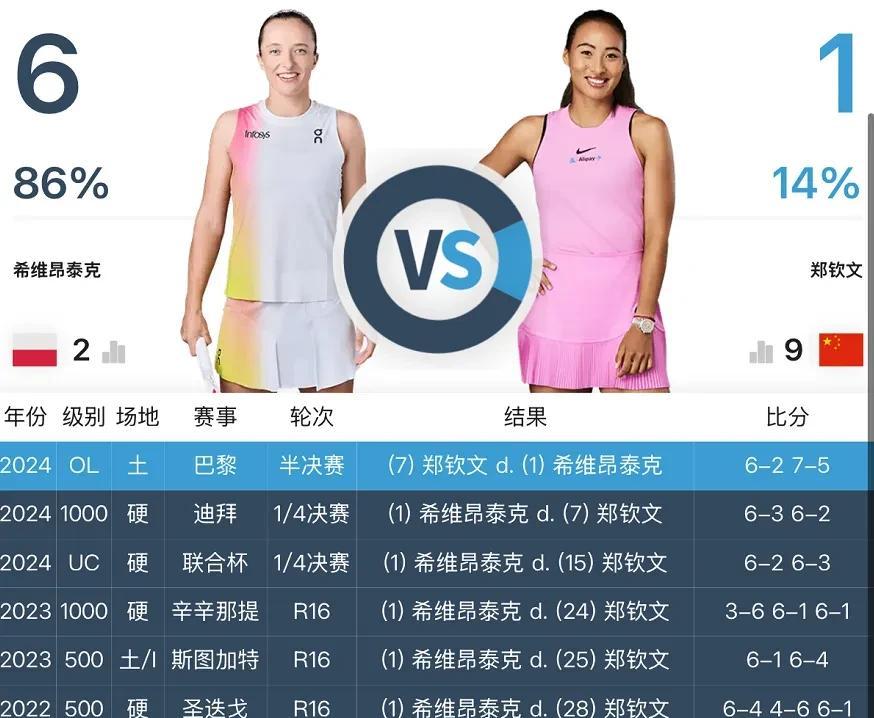 说起郑钦文和斯瓦泰克,就不得不提起去年奥运会那场惊心动魄的半决赛。那场比赛简直就像是打了鸡血似的,两个人你来我往,打得那叫一个激烈。特别是第二盘,郑钦文一度落后0-4,眼看就要输掉比赛了。但就在这个时候,郑钦文仿佛开了挂一样,连赢六局逆转了比赛。那场面,说实话看得人心惊肉跳的,简直就像是在看电影似的。斯瓦泰克被这么一搞,整个人都懵了,最后连决胜盘都没怎么发挥出水平来。据说赛后她哭了好几个小时,对丢掉金牌的机会感到非常遗憾。
