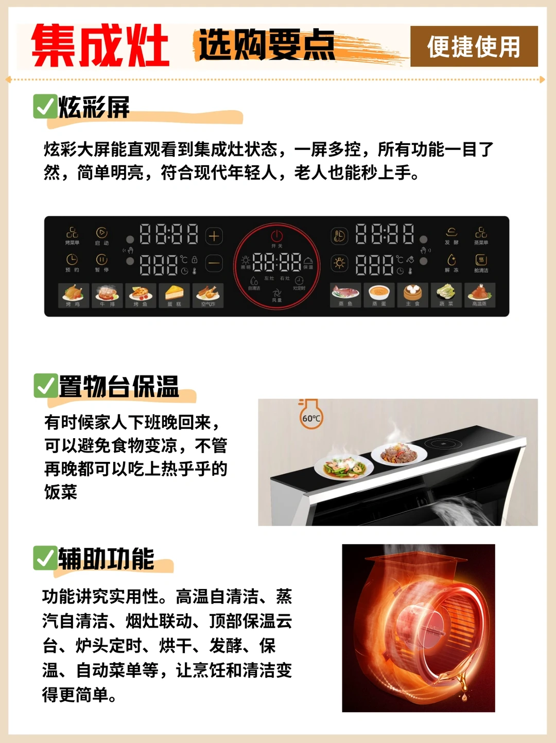 🏷平民价格也有高性能。最大静压达到1000pa,算市场顶流,身处总高33层的一楼,也能轻松排出油烟,大风量+高温自清洁(75℃软化油污并高速甩离)+舱清洁,让厨房和蒸烤内腔保持干净如初;烟灶联动+集成灶炉头定时,使用更便捷,煲汤追剧两不误。