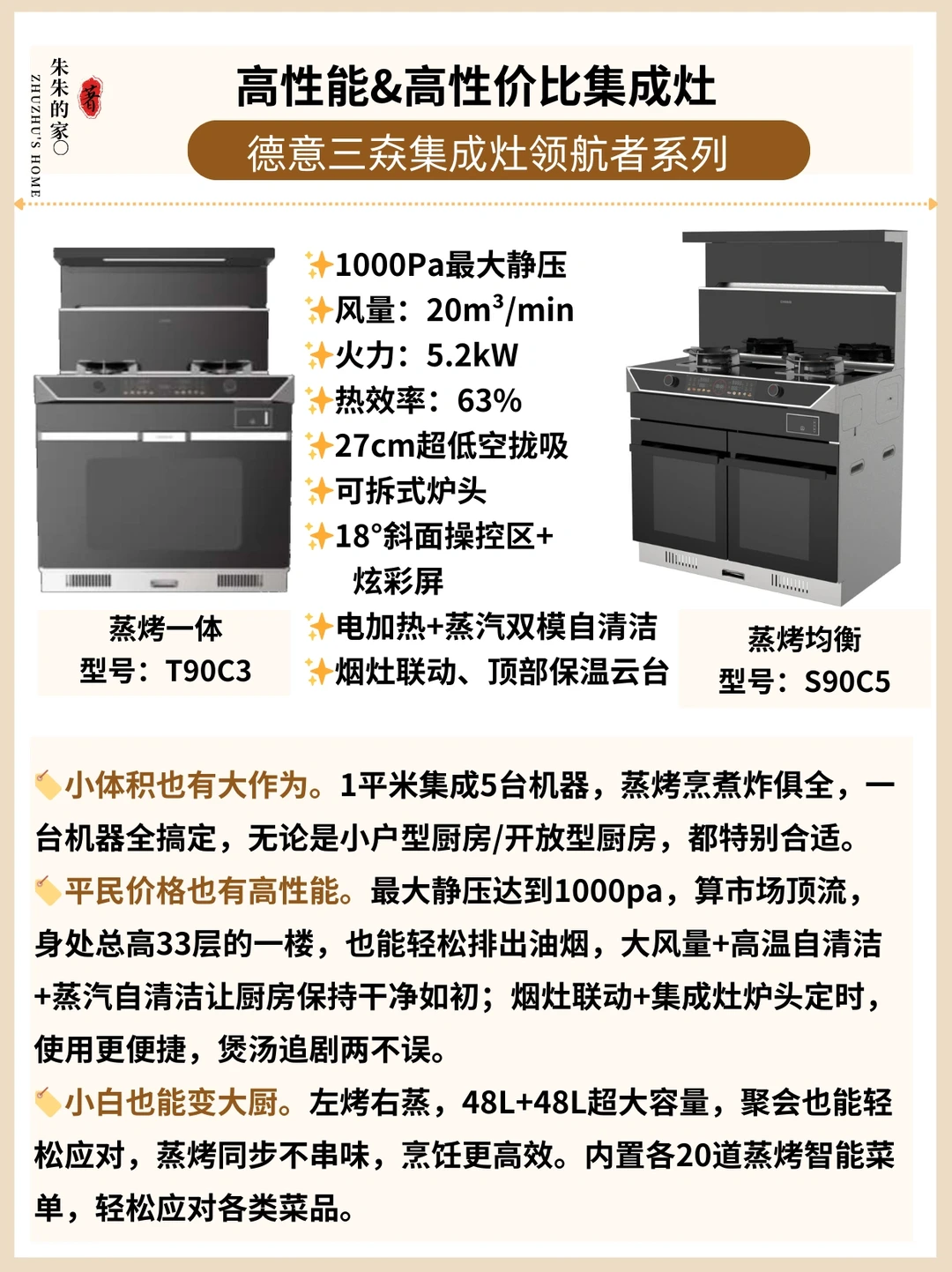 🌿不知道如何选的,可以看下德意新出的这个三𡘙集成灶领航者系列:包括48L+48L的蒸烤均衡款和90L容量空间的蒸烤一体款。