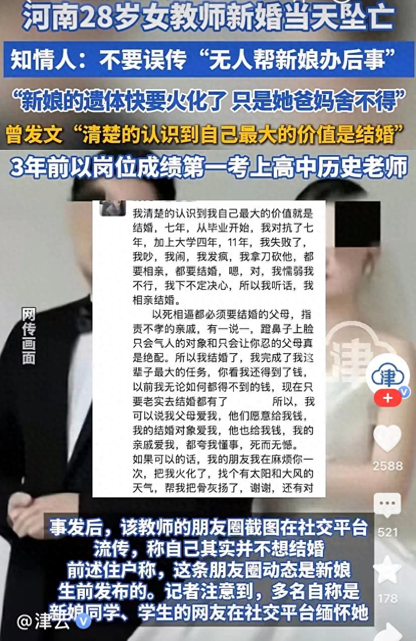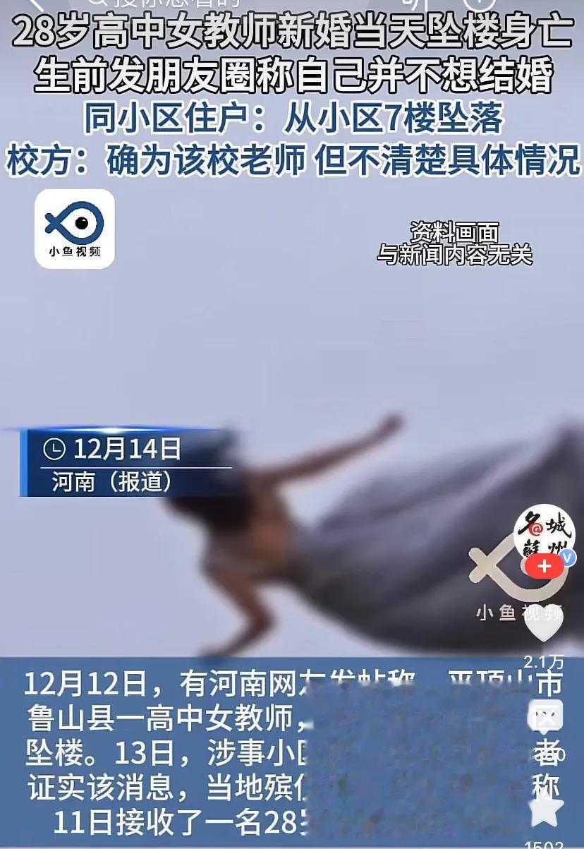 近日,关于28岁女教师婚礼当天坠楼一事,真的让人唏嘘不已!