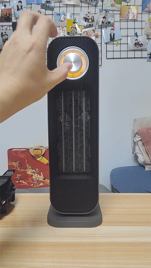 这款立式暖风机支持90°广角摇头送热,省去了手动换吹风角度的麻烦。