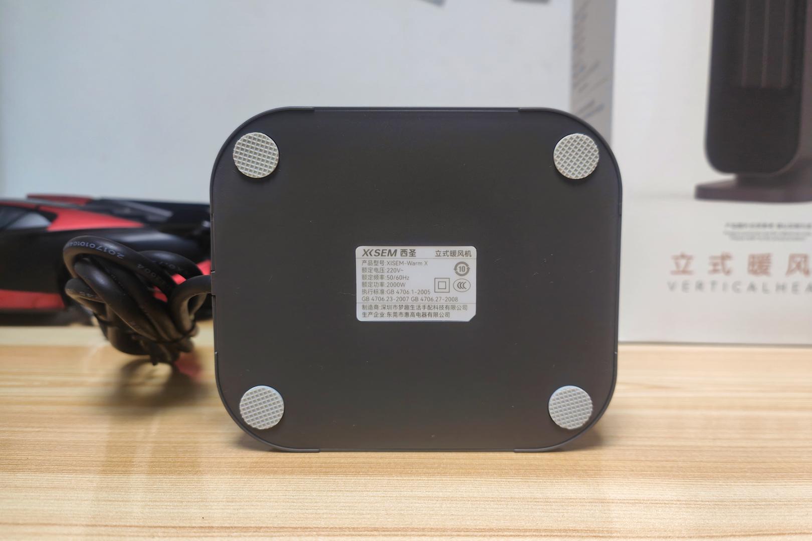 最后,桌面暖风机最怕的就是意外倾倒,尤其是在堆满文件、放着水杯、摆着数码设备的情况下。西圣Warm X立式暖风机内置了倾倒检测机制,一旦设备被碰倒或重心偏移到危险角度,它会自动停止工作,避免暖风持续吹向桌面物品,引发安全隐患。再加上全阻燃材质、WOS控温算法和NTC多点温控监测,安全性方面的考虑非常周到了。