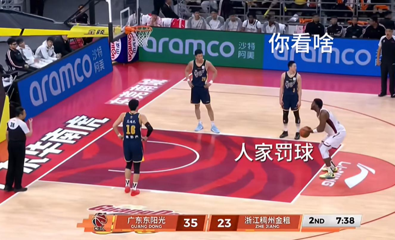 当时广东队领先12分,或许他们小视浙江队,以为稳赢了,对抢篮板非常不专注,好像是队内训练那样,非常不重视和专注。可悲的是,不但队长胡明轩把眼睛望向另一端,而王少杰也望向另一端,两人的眼光都没有放在执行罚球的约瀚逊身上,后者罚未罚球他俩并不知道,球砸到篮框之后他们才反应过来,可是这时篮板被约瀚逊抢到了并进行大力扣篮。焦泊乔却双手插腰,也不专注,三人的反应都慢了一拍,而不是半拍。
