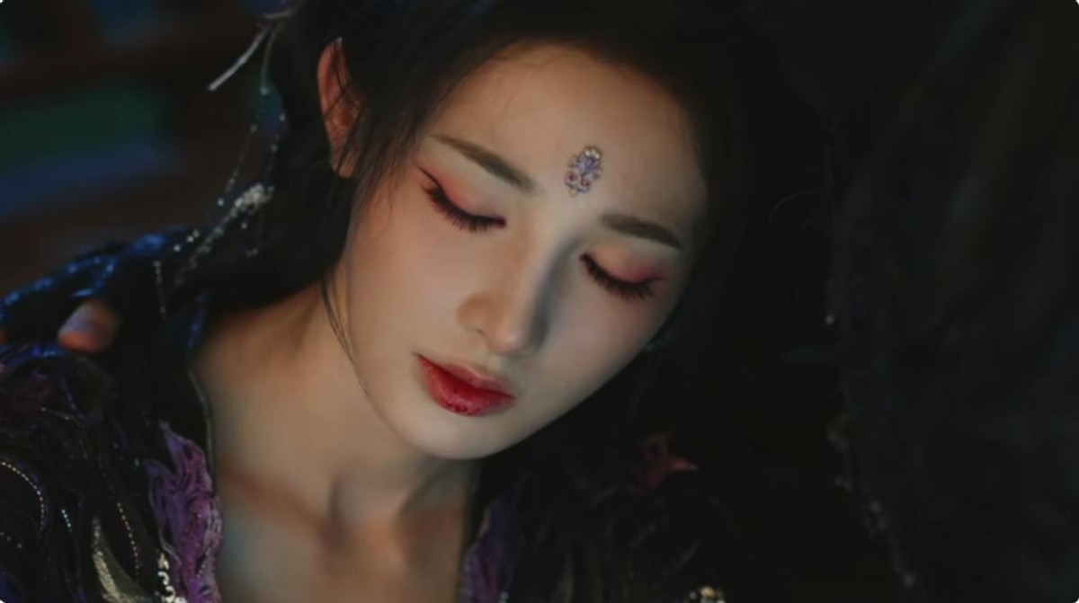 造型上,她成功将从《东宫》里的红衣形象,升级为今次的紫衣魅惑,她的脸型、眼型、气场都承载得住。
