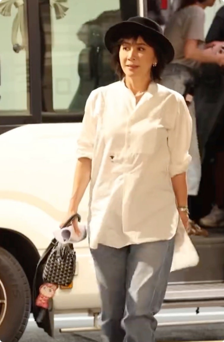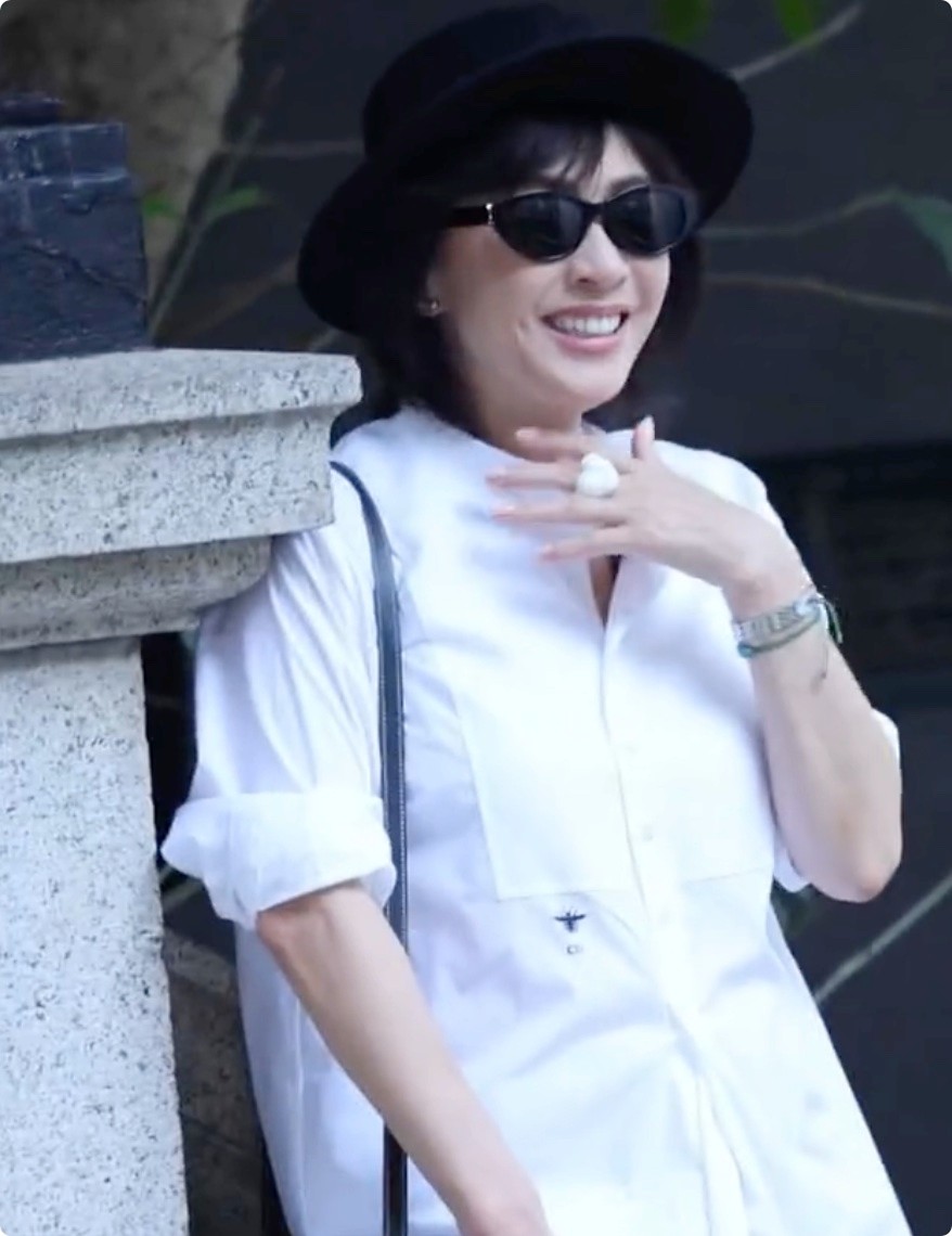 白衬衫、阔腿裤、墨镜一戴,整条街都成了她的秀场。