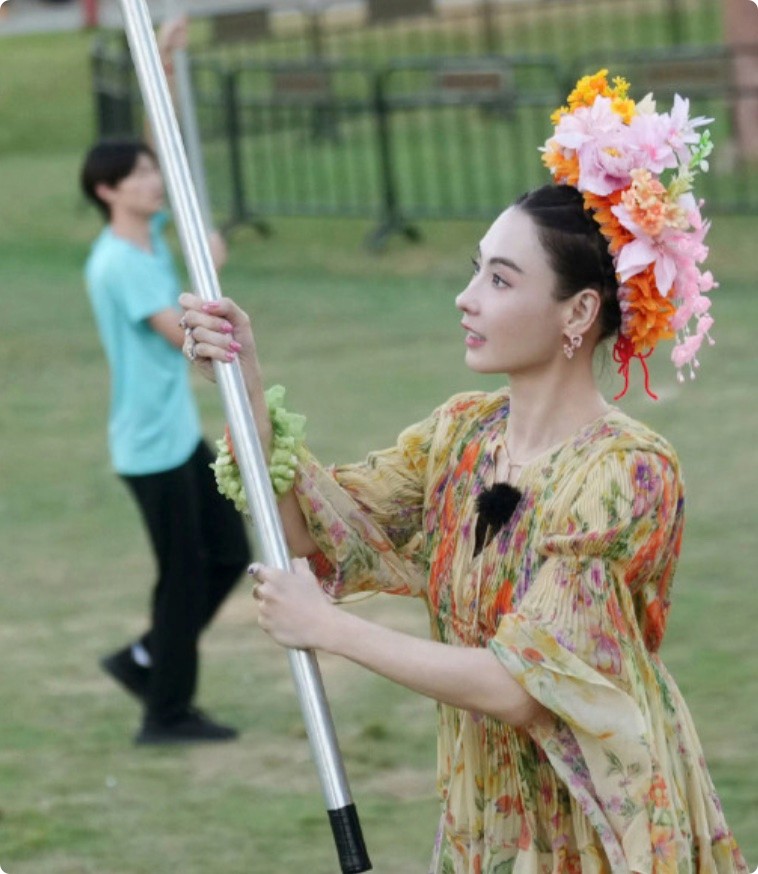但镜头生图里,这套衣服略显比例短,还好宁静的硬件在线,高挑的大高个,也没耽误她露腿吸睛。
