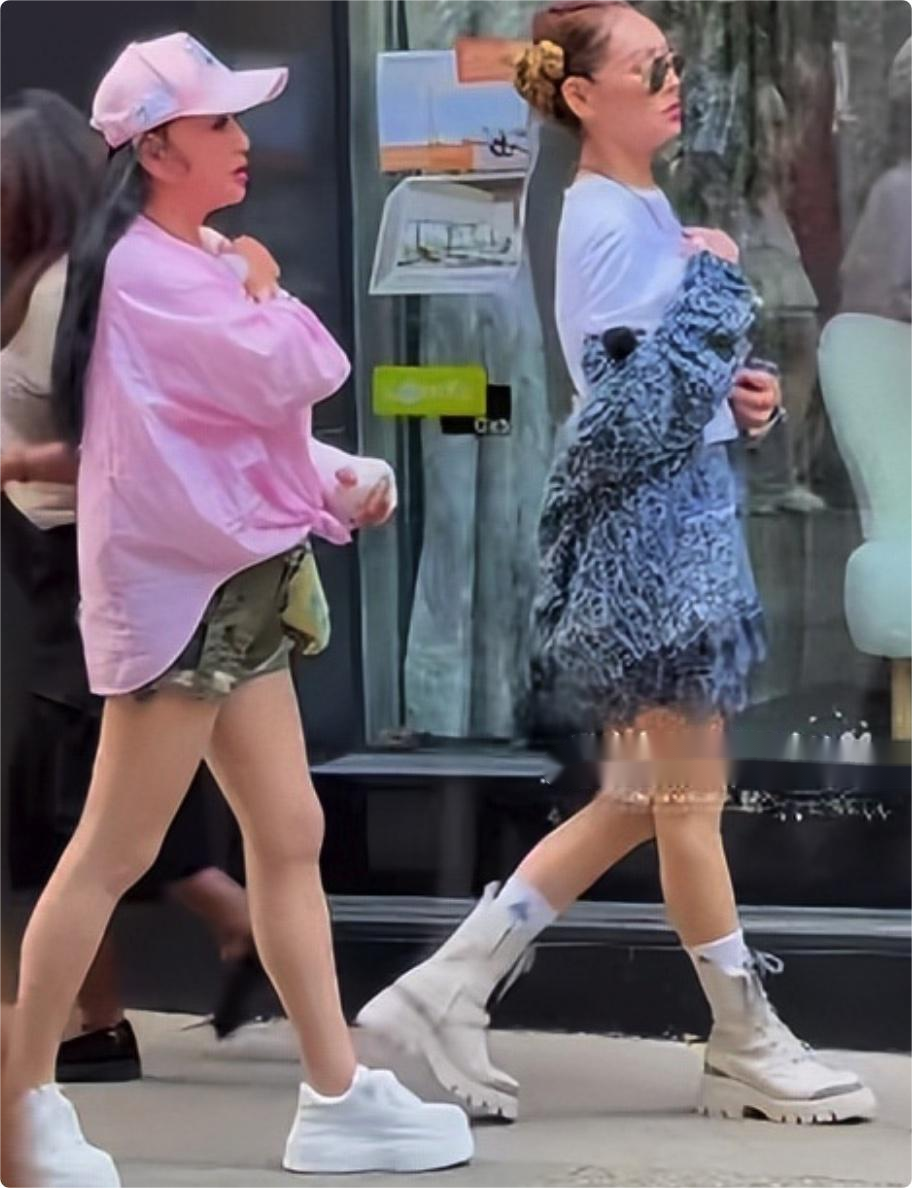 两人边走边聊,笑声不断,合照时也像极了亲姐妹。