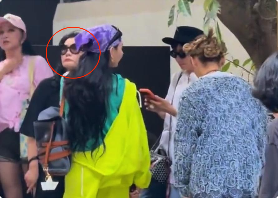 她一路沉默、戴着墨镜,全程噘嘴黑脸,甚至连刘晓庆都懒得搭话。