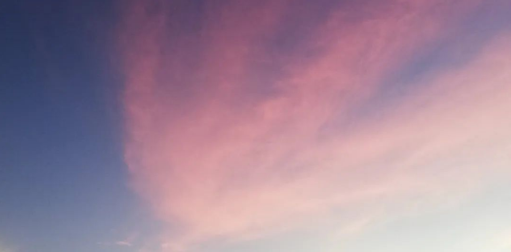 回去的时候,天阴了起来,虽然无雨,但有明显的温差变化,到了傍晚太阳下山需要添一件薄外套。午休起来17点左右天就已经半黑了,云层散开,天空是许久未见粉色。太美好了,这样的景不能独享。我喊了小朋友们一起,聚到屋顶上看晚霞,看着粉色的天空颜色渐深,直到天完全黑下来。小朋友们提醒我头顶上的月亮出来了,只是一弯银丝月却亮得耀眼。白色的月和粉色的天空组合在一起,是我从未见过的景象。
