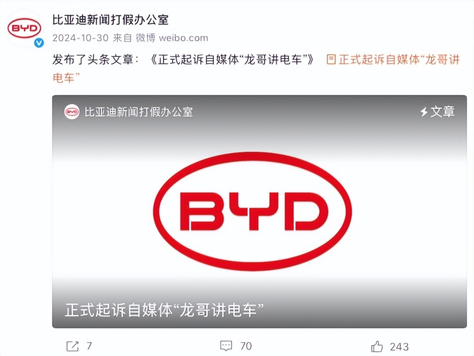 近日,比亚迪起诉“龙哥讲电车”“满格电新能源”等自媒体账号侵权案一审宣判。法院认定被告编造、传播针对比亚迪的虚假信息,损害其品牌声誉,判令被告停止侵权、消除影响并赔偿200万元。比亚迪品牌及公关处总经理李云飞明确表态,接受客观批评与合理误解,但绝不容忍黑公关长期恶意诋毁,坚定捍卫品牌正当权益。