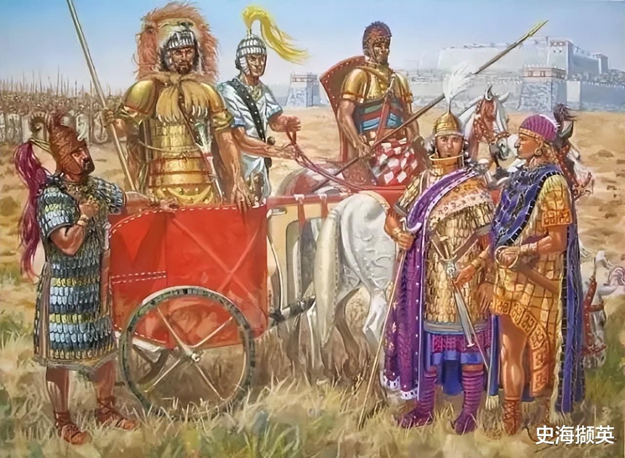 相比之下,同时代的其他文明军队,每辆战车只能运载2名成员。无论较为笨重的巴比伦样式,还是奉行灵活机动的埃及轻车,都在攻击力与防护水平方面居于下风。
