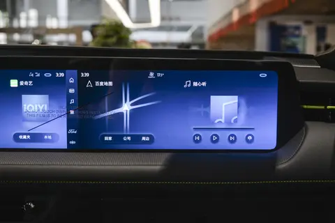 内饰氛围营造得有模有样。1.1米贯穿巨屏(12.3英寸仪表+27英寸中控),4K分辨率,UI简洁,语音交互响应快,说“导航到家”就秒懂。BO音响效果立体,播摇滚时低音沉浸感强。材质上,软质包裹中控和门板,缝线细腻,触感不廉价。氛围灯多色可选,夜间开车不单调。科技配置里,SYNC 4系统支持CarPlay无线投屏,地图实时路况准。但芯片偶尔卡顿,切换菜单慢半拍。可以看出,内饰不花哨,却实用,科技感够日常不累赘。比纯燃油版,混动仪表多显示电量分配,趣味性加分。