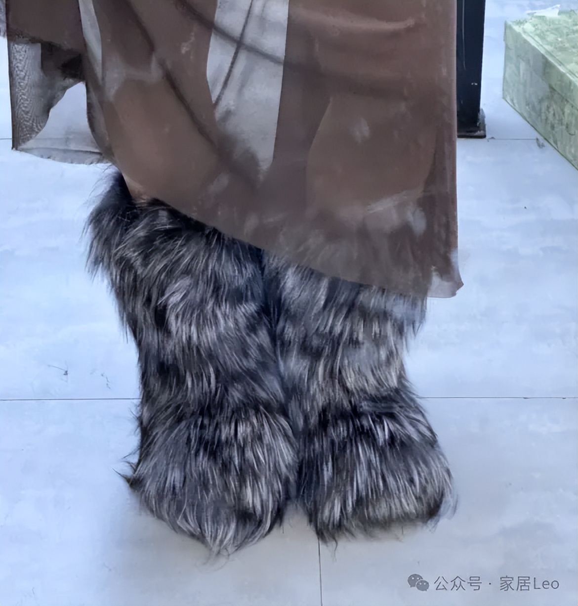 结果呢?买回来之后,只有下大雪的时候,穿过一次,结果穿了,鞋子外面的毛毛全都湿了,毛毛还会打结,别说出片了,穿着根本不舒服。