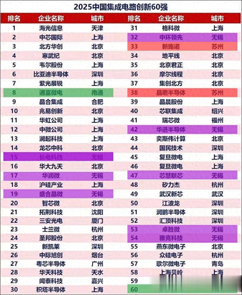 无锡无锡就真的厉害了,无愧新的“芯片之城”!一共有8家企业入围。
