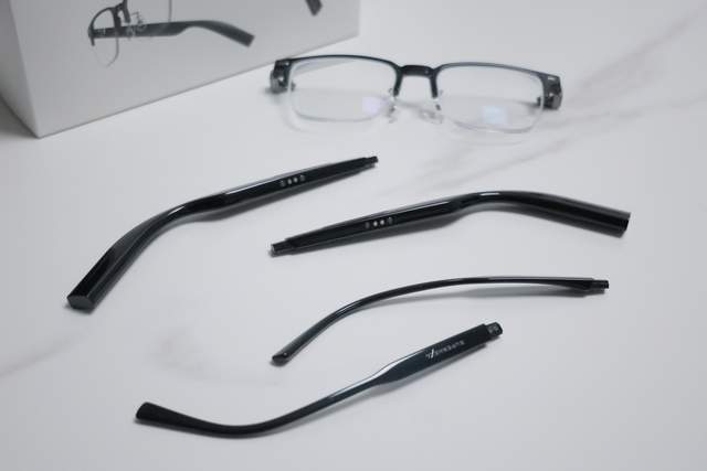 单从外观看,它就是一副普通的眼镜,并没有科幻电影中智能眼镜的厚重感与科技色彩,除了镜腿部分略粗,不仔细观察很难发现它与普通眼镜有什么区别,因此,即使在不使用它的音频功能时,也完全可以将它当做近视眼镜使用,实际佩戴也不会显得很突兀。