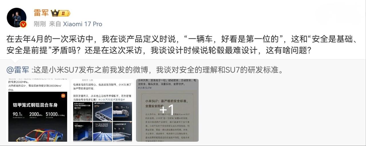 🔟雷军回应“小米汽车安全争议”:好看并不等于不安全