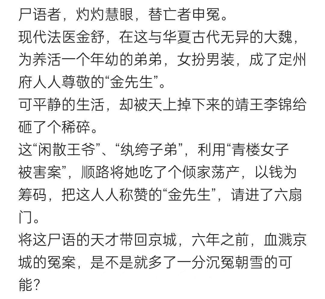 病弱男主×憨憨可爱女主,在古代探案文中算得上一股清流,设定新颖有趣~剧和小说都好看,强推!