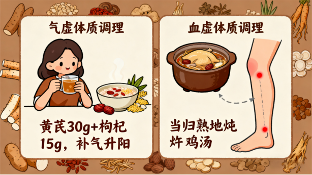 o每天按揉 “足三里穴”(膝盖下3指,胫骨外侧1横指)和“血海穴”(膝盖内侧,髌骨内上缘上2寸),每个穴位按揉5分钟,足三里穴能“补气健脾”(针对气虚),血海穴能“活血化瘀”(针对血瘀);