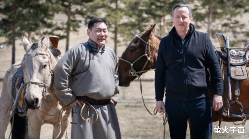 而当卡梅伦与蒙古总理奥云额尔登·卢桑纳姆斯兰会面时,两人还一起在马匹前合影留念,看上去其乐融融。