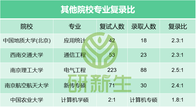 南邮虽然不少专业的复录比都偏高,不过还好没有高到太离谱的程度,大致都在2:1左右,不过这也很高就是了,2个人里面就要淘汰一个。