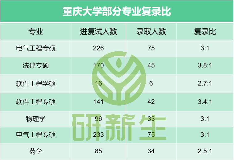 重庆大学这两年的复录比一直很高,好些院系都超过2:1,这属实有点太高了,一般超过1.5:1就算比较高了,超过2;1则算很高了,再加上重庆大学初试占比5成,所以很多高分依旧难逃被刷的命运。当然啦,如果复试能力抗打,换个角度来说,进复试更容易!