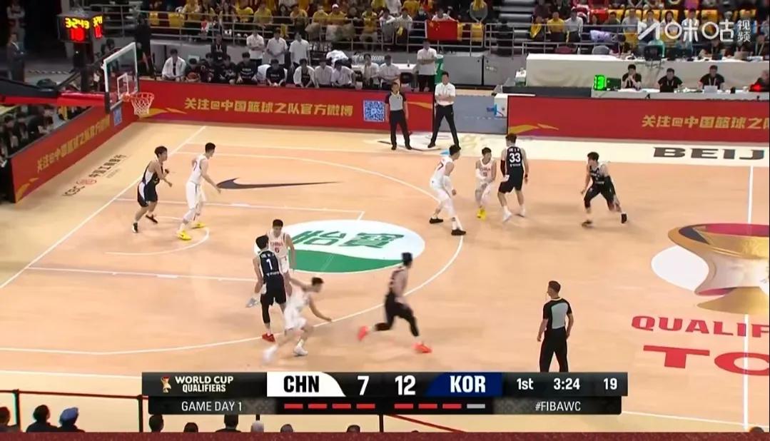 首节,周琦上来两分,接着造犯规两罚一中,李贤重反击造犯规两罚全中,李源希3分打进,李贤重顶弧3分再进,开局3-10,中国队暂停,廖三宁突破2分,何准基两罚全中,胡金秋篮下2分,廖三宁突破造犯规两罚全中,韩国队再进3分,廖三宁突破2分,韩国再进3分,程帅澎3分还上,胡金秋篮下2分,第一节中国16-24落后。