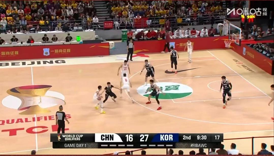 第二节,李贤重3分,胡金秋篮下2分,李贤重突破2分,曾凡博突破2分,周琦反击2分,韩国队暂停,22-29,周琦篮下造犯规两罚一中,李承铉干拔3分,周琦篮下造犯规两罚一中,何准基篮下连得4分,张镇麟中投2分,何准基篮下暴扣2分,廖三宁突破造犯规两罚全中,李贤重再进3分,胡金秋篮下2分,廖三宁突破2分,韩国队再进3分,张镇麟突破2分,梁俊熙3分,上半场中国队34-47落后。
