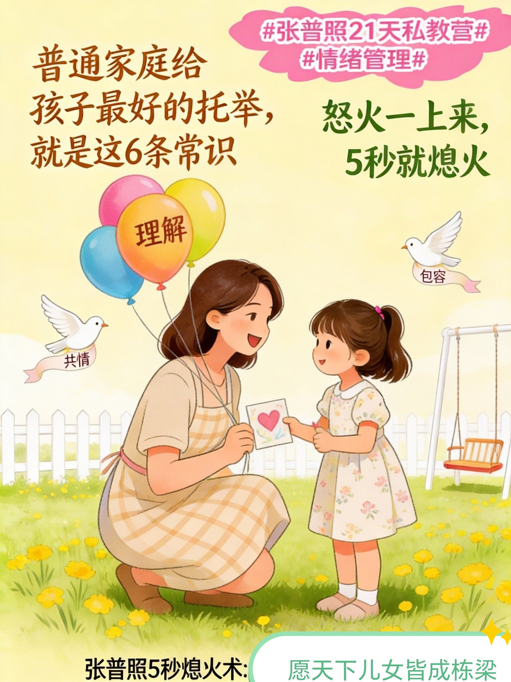 教育,从来不是一场关于“正确道理”的军备竞赛。真正的托举,发生在那些书本之外、道理之前的微妙瞬间——在你即将失控却最终平息的呼吸里,在你把指责咽回去化作理解的沉默里。张普照5秒熄火术,练的就是这“瞬间”的转化力。它不教你新的常识,而是让你已有的爱与智慧,能毫无损耗地抵达孩子心里。当一个妈妈情绪稳定,家里便没了风暴,只有滋养。这,才是我们能给孩子最强大、也最平凡的托举。从这5秒开始,让自己成为孩子一生安全感与幸福的源头。