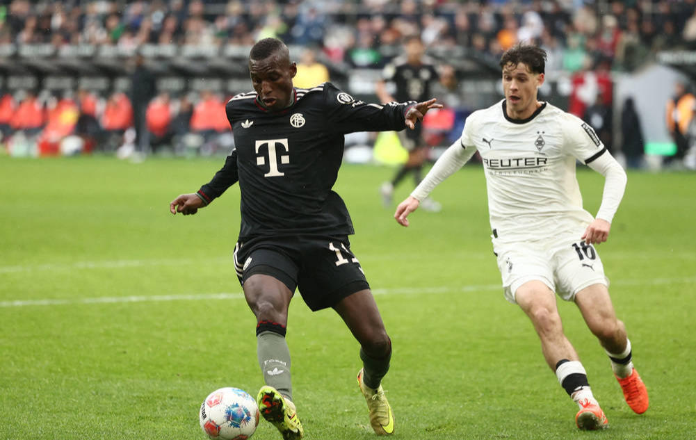 北京时间10月25日21:45,2025-26赛季德甲联赛第8轮,拜仁慕尼黑前往客场对阵门兴格拉德巴赫。上半场比赛,迪亚