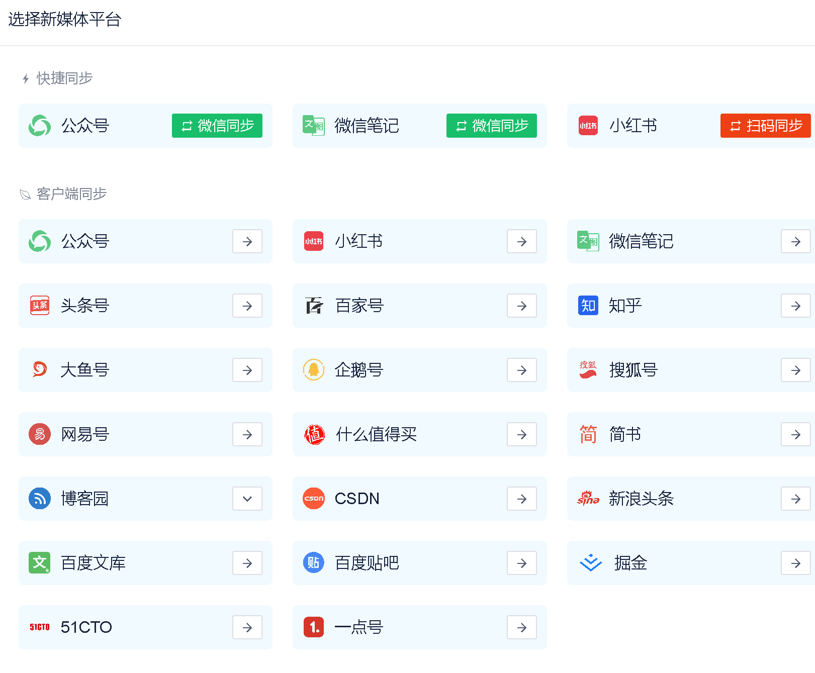 每发一篇文章,要登录三四个平台重复上传。有一云AI编辑器内置了多平台一键分发系统: 支持同时发布到包括公众号、头条号、百家号、搜狐号、知乎、小红书等 20+ 平台。