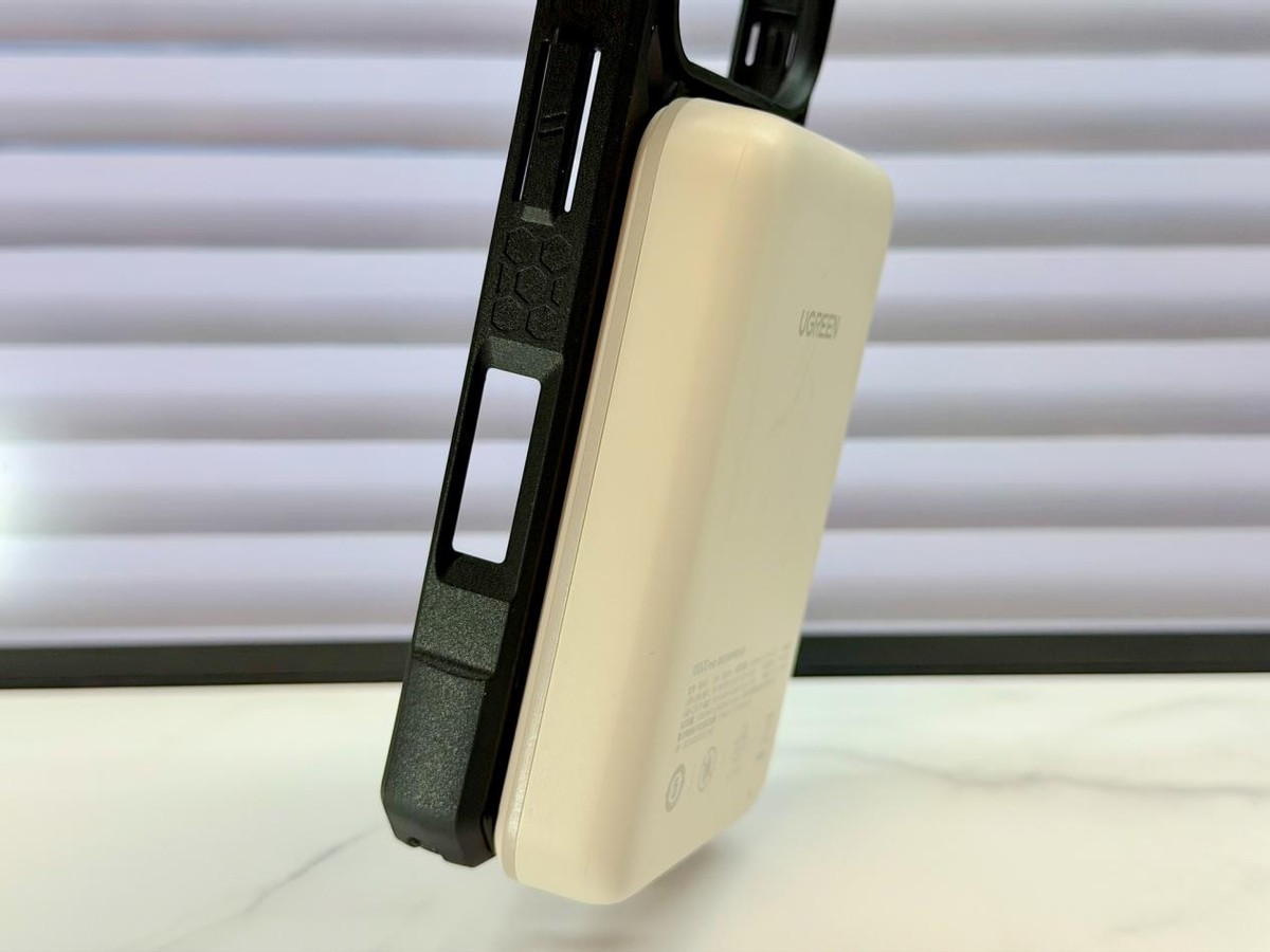 机身的开孔定位也是严丝合缝,充电口的开口预留了足够的空间,即使是异形的充电线也可以轻松使用。底部的两侧设计了栓绳孔,方便安装挂绳使用,安全系数加倍。
