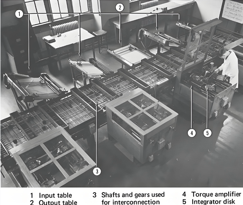 这台机器叫“微分分析仪”(Differential Analyzer)。它是当时世界上最强大的计算机。