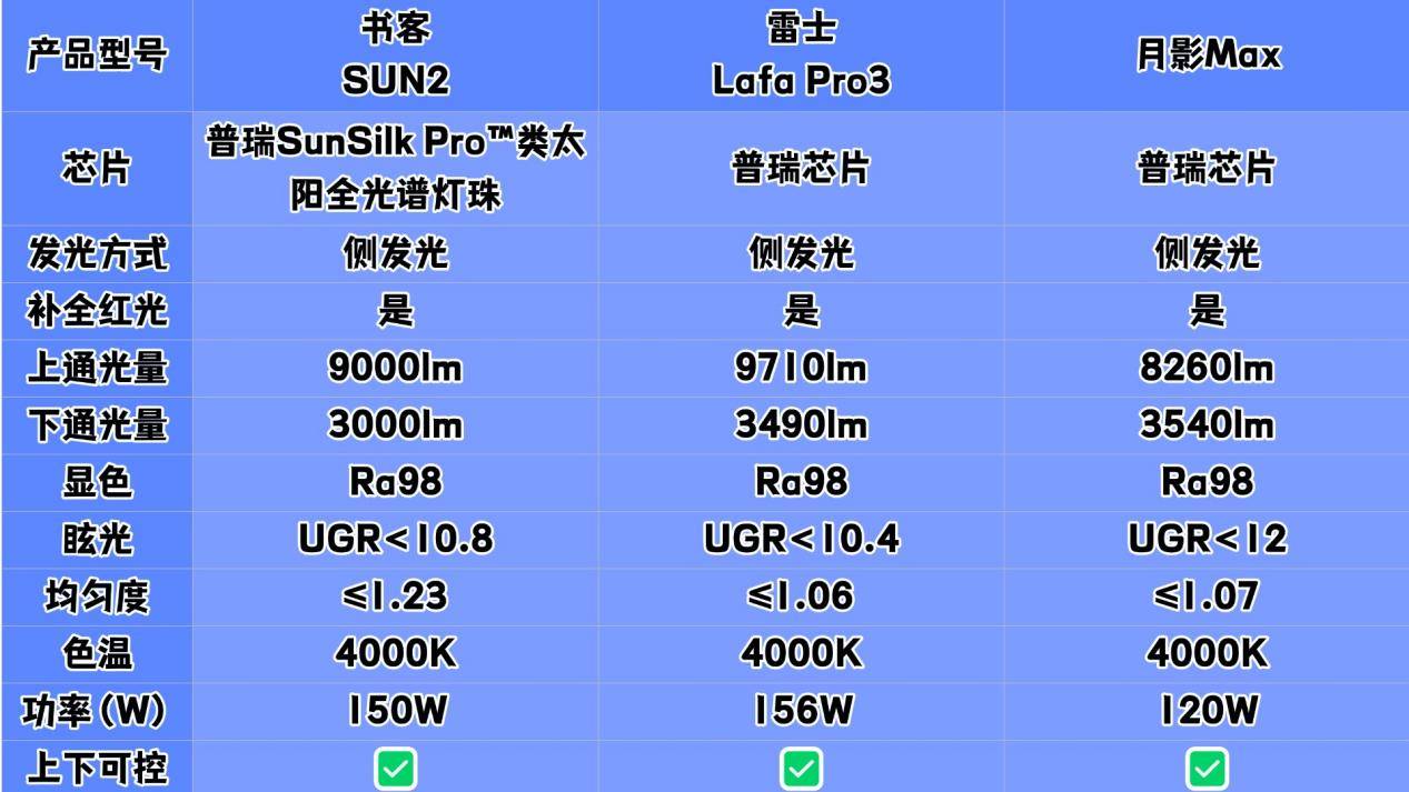 如今,越来越多家庭开始注重室内环境健康,护眼大路灯凭借其宽广、科学控光的特性,逐渐成为家庭常用照明电器。不过,市面上存在众多没有技术调校的护眼灯,不仅不护眼,还容易存在光线均匀性不佳、材质安全方面不合格等风险,作为一名小家电测评博主,近期受到很多伙伴私信,都在询问雷士大路灯怎么样?书客、雷士、月影哪个品牌更专业?对此,我针对市场上几款关注度较高的护眼大路灯:书客SUN2、雷士Lafa Pro3、月影Max进行了系统测试,本文将通过实际使用体验和性能数据,分析各产品的特点,为大家选购提供参考建议。