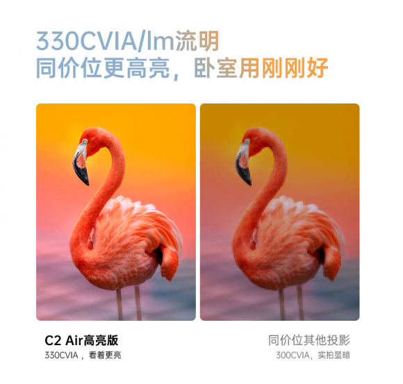 大眼橙C2 Air高亮版投影仪的核心亮点之一在于其出色的画质表现。该产品拥有330CVIA/LM流明的亮度,即使在明亮的客厅或白天的卧室环境中,也能呈现出清晰、细腻的画面。