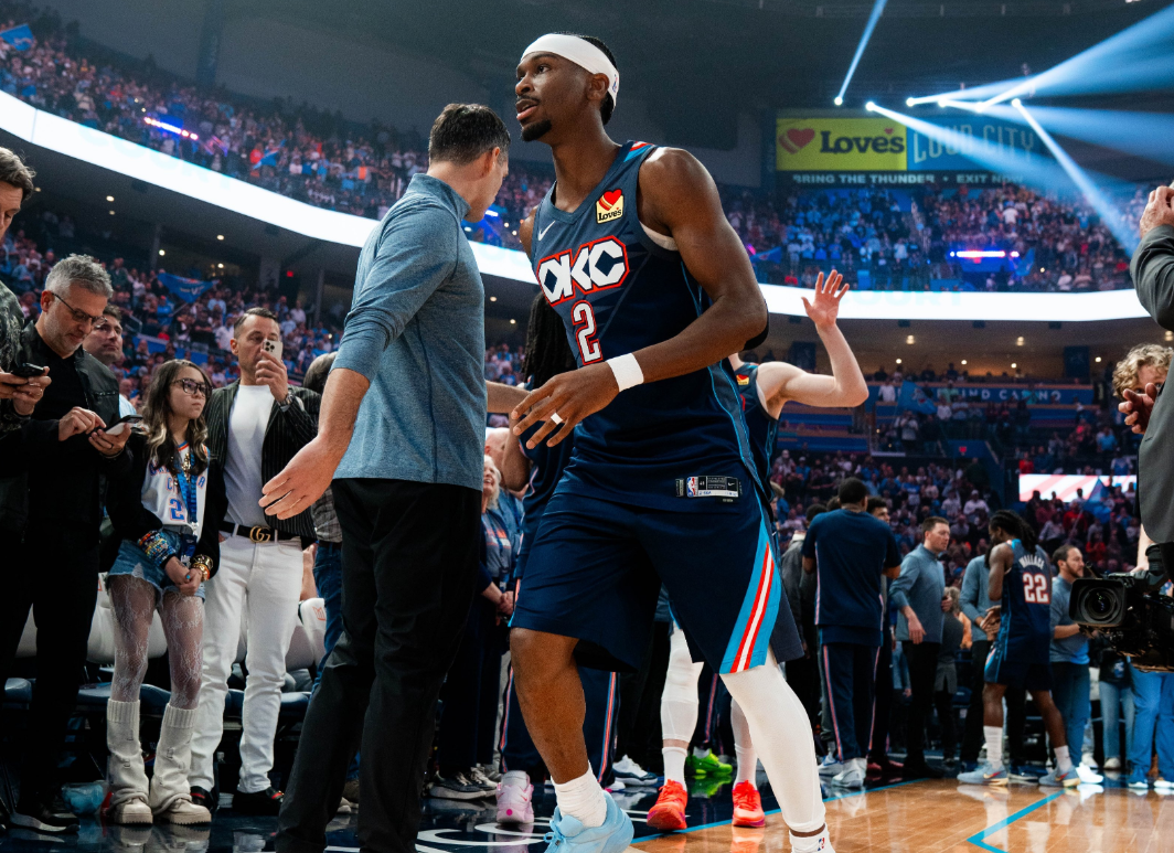 新赛季开打一个多月,本赛季实力最强的球队,当之无愧是雷霆。开赛前19场比赛,拿下18场胜利,其中主场9胜0负,客场9胜1负,是联盟唯一一支主场保持不败的球队。根据统计,在此前NBA历史上有四支开局18胜1负的球队,最终有两支球队拿到总冠军,雷霆是第五支。从雷霆球队数据看起,球队场均得分122.1分联盟第三,场均控制失分105.6分联盟第一;进攻效率120.4联盟第四,防守效率104.2联盟第一,净效率值+16.2是历史第一,大幅刷新NBA原有的百回合净效率值纪录。