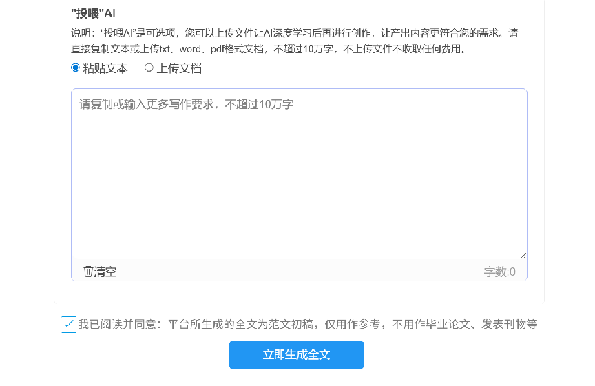 还它支持“投喂AI”功能,可上传文件让AI深度学习后创作。