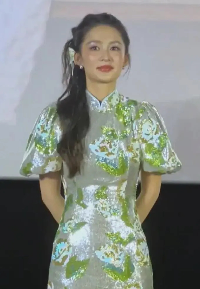 聚焦重庆站,李沁以一袭融合古典与现代的旗袍风泡泡袖短裙惊艳全场,曼妙身姿与清丽容颜交相辉映,尽显东方韵味。然而,尽管整体造型无可挑剔,李沁的妆容却在某些瞬间显得略有遗憾,某些现场照片中,色彩鲜明的眼影、腮红与唇色仿佛独立存在,略显浓重,与工作室事先公布的精致妆容形成鲜明对比,让人不禁思考光线与妆容设计间的微妙平衡。