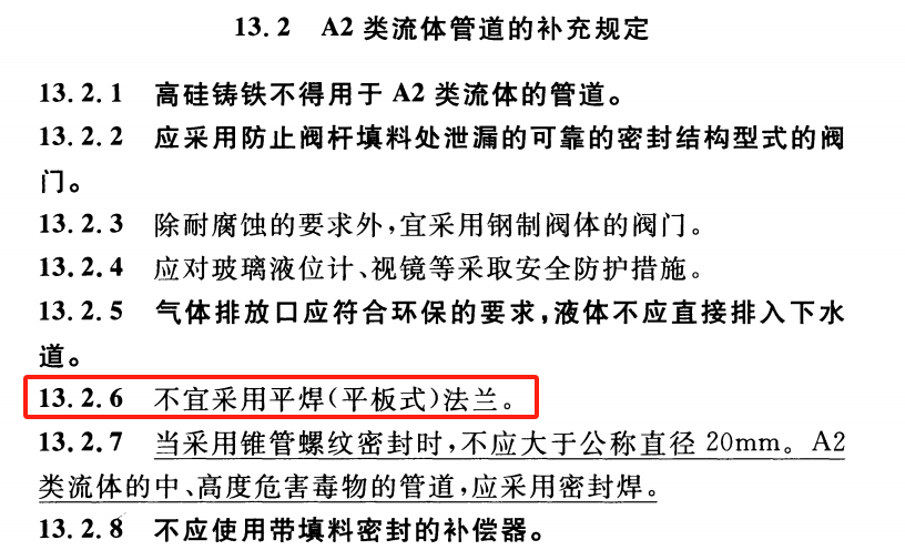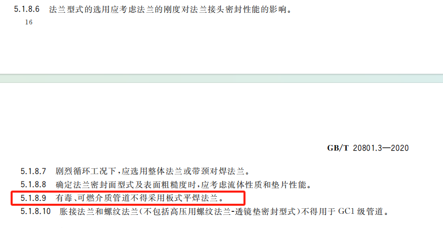 5.1.8.9 有毒、可燃介质管道不得采用板式平焊法兰。