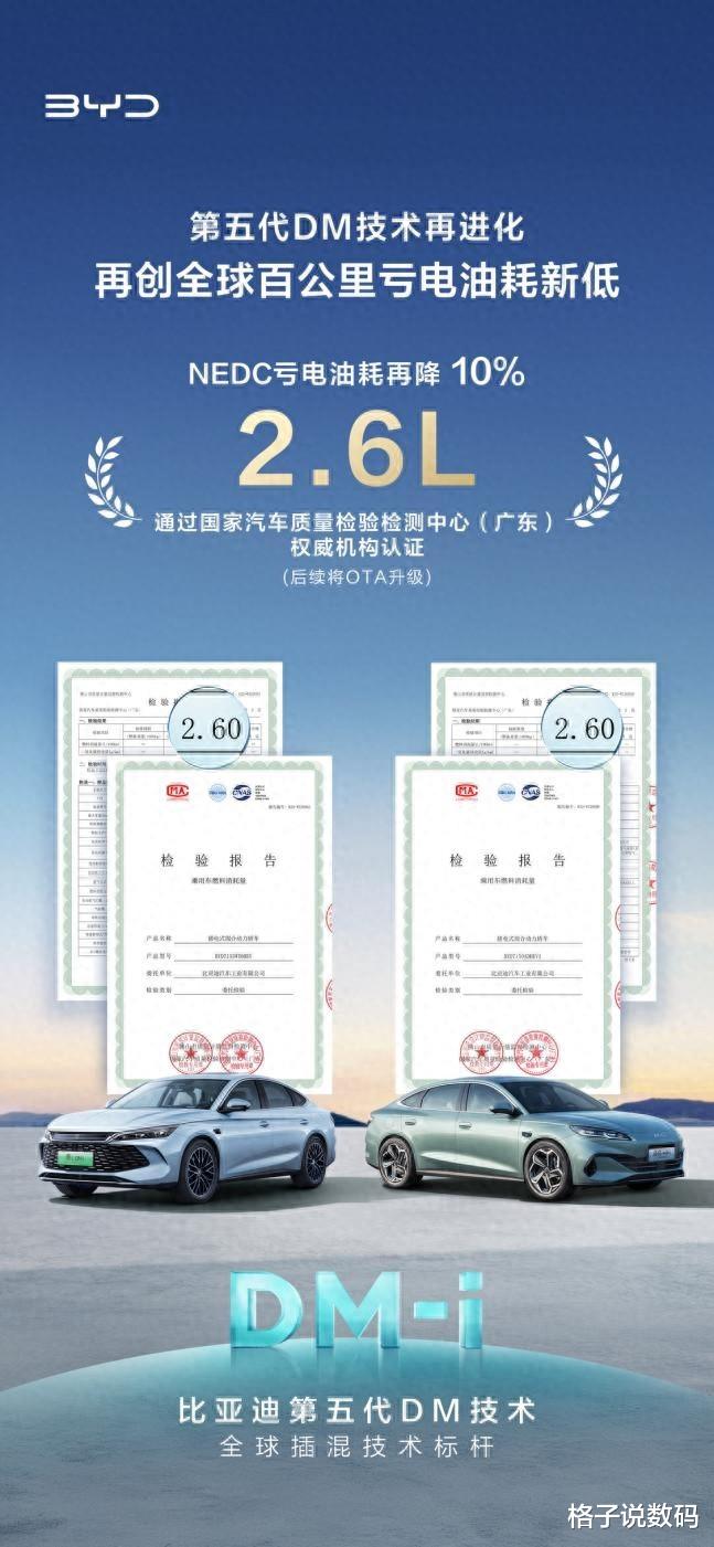 比亚迪第五代DM技术再创全球新低!继去年开创NEDC百公里亏电油耗2.9L的“2时代”后,2024年5月28日,比亚迪宣布该技术再进化,油耗再降10%至2.6L,并通过国家权威机构认证。这不仅巩固了其全球插混技术标杆地位,更宣告插混竞争进入“策略比拼”新阶段——从硬件效率转向软硬件协同策略的深度优化。