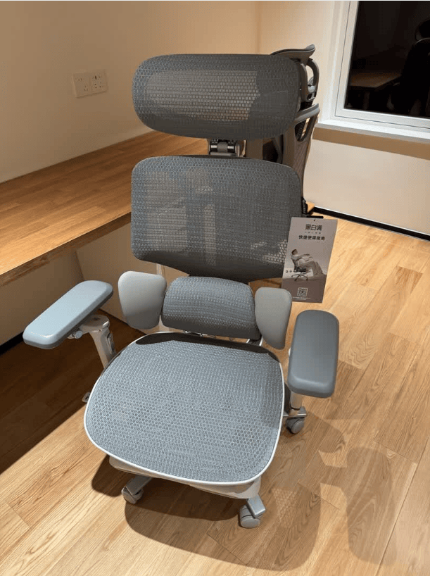 这款人体工学椅整体尺寸偏大,座垫宽敞,适合体型较大的人群,坐垫采用高弹透气网布,久坐也能保持干爽。椅背采用仿生学设计,结合三段式结构,从颈椎到腰椎都能获得精准支撑,同时配备4档可调腰靠,可根据坐姿和腰部受力自动或手动调节,有效缓解腰部疲劳。头枕面积较大,支持上下、前后和角度调节,能够保持颈部放松。铝合金底盘稳固耐用,整体结构可靠,椅背、腰靠、头枕和扶手的多维调节,让办公、休息或短暂午睡时都能找到舒适的坐姿。