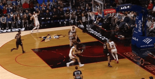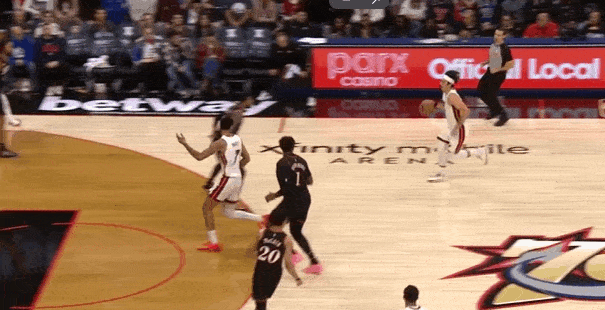 转换进攻庄神回收镇守篮下,韦尔“拖车跟进”(Trailer)获得空位投篮机会,接队友传球三分打击庄神。
