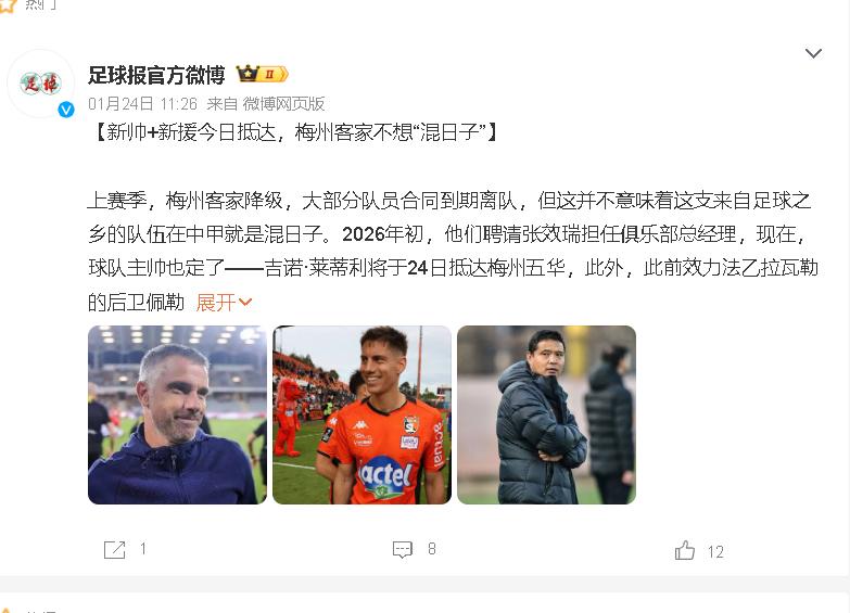 最近梅州客家足球俱乐部一纸公告引爆中国足坛,为什么这样说?前国脚张效瑞出任总经理,意大利名帅吉诺·莱蒂耶里执掌一线队教鞭,刘君鹏辅佐。这波管理层与教练组的“大换血”,究竟是梅州客家的破局奇招,还是中甲“小透明”的挣扎?