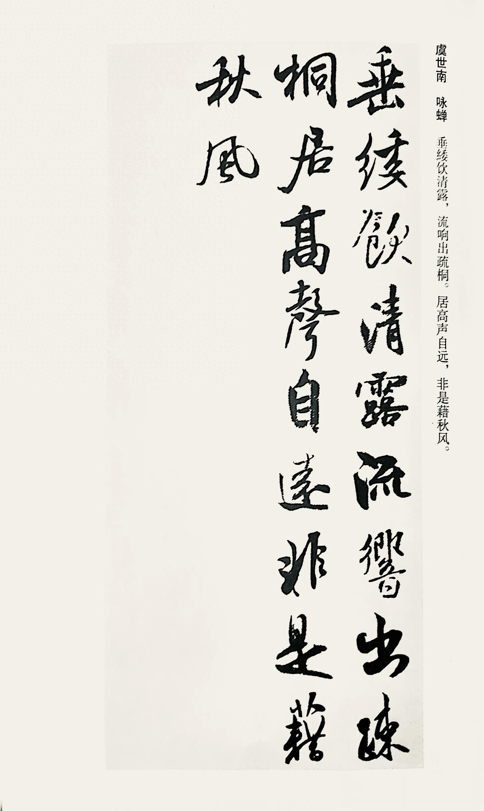 蝉垂下像帽缨一样的触角吸吮着清澈甘甜的露水,连续不断的鸣叫声从稀疏的梧桐树枝间传出。蝉正是因为在高处它的声音才能传得远,并非是凭借秋风的力量。