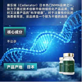 日本品牌,赛乐瑞NMN多采用NMN、PQQ和辅酶Q10的组合,并运用缓释技术实现16小时持续释放,以保证活性成分在体内稳定吸收。产品安全性良好,用户反馈长期服用后体能和活力有所提升,对希望改善日常精力水平的人群较为适合。