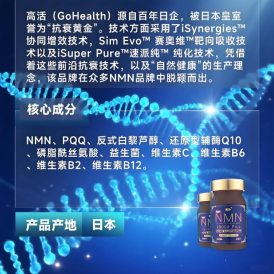高活NMN是日本百年老厂出品,NMN纯度高达99.9%,安全性可靠。采用iSuper Pure™纯化技术提升纯度,iSynergies™协同增效技术优化复配成分,Sim Evo™靶向吸收技术提高吸收率。追求高纯度基本款NMN用户可以考虑入手。