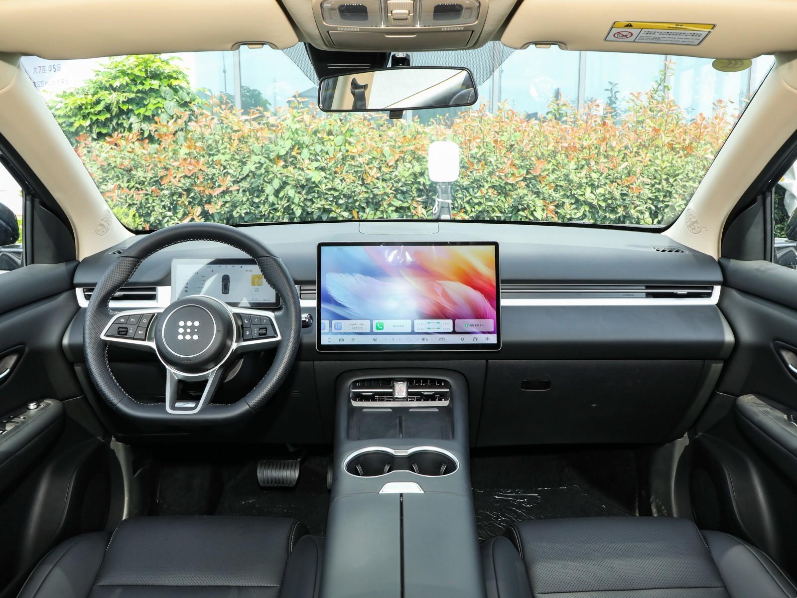 不止是车尾的轮廓相似,蓝电E5 PLUS的内饰也能够看到旧款问界M7的影子,比如该车采用了上深下浅的内饰配色,并提供有胡桃棕、赤霞橙以及全黑配色;怀挡式换挡杆为中央操控区留出了充裕无线充电面板以及杯架等储物空间,在驾驶员前方是8.8英寸液晶仪表,15.6英寸悬浮式中控屏尺寸内部则是搭载了HUAWEI HiCar 4.0科技座舱,支持多种形式的手机互联、语言连续识别以及车载KTV等功能,另外,新车还引入了豆包AI大模型,进一步提升了车机的可玩性。