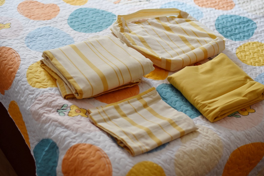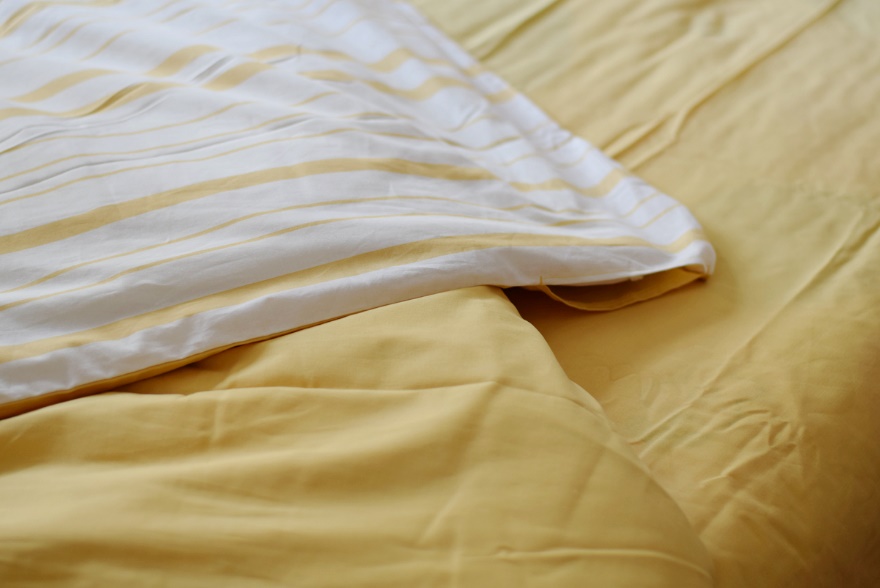 这个就是8H A类纯棉ins有氧件套整体效果,线条有粗有细给人的感觉还不错,加之白色与向阳黄的组合给人一种活力充沛的感觉,被套的背面则是向阳黄颜色,让人一眼就能分辨出A、B面,无论是实用性还是整体搭配加上颜色效果给人眼前一亮的感觉。