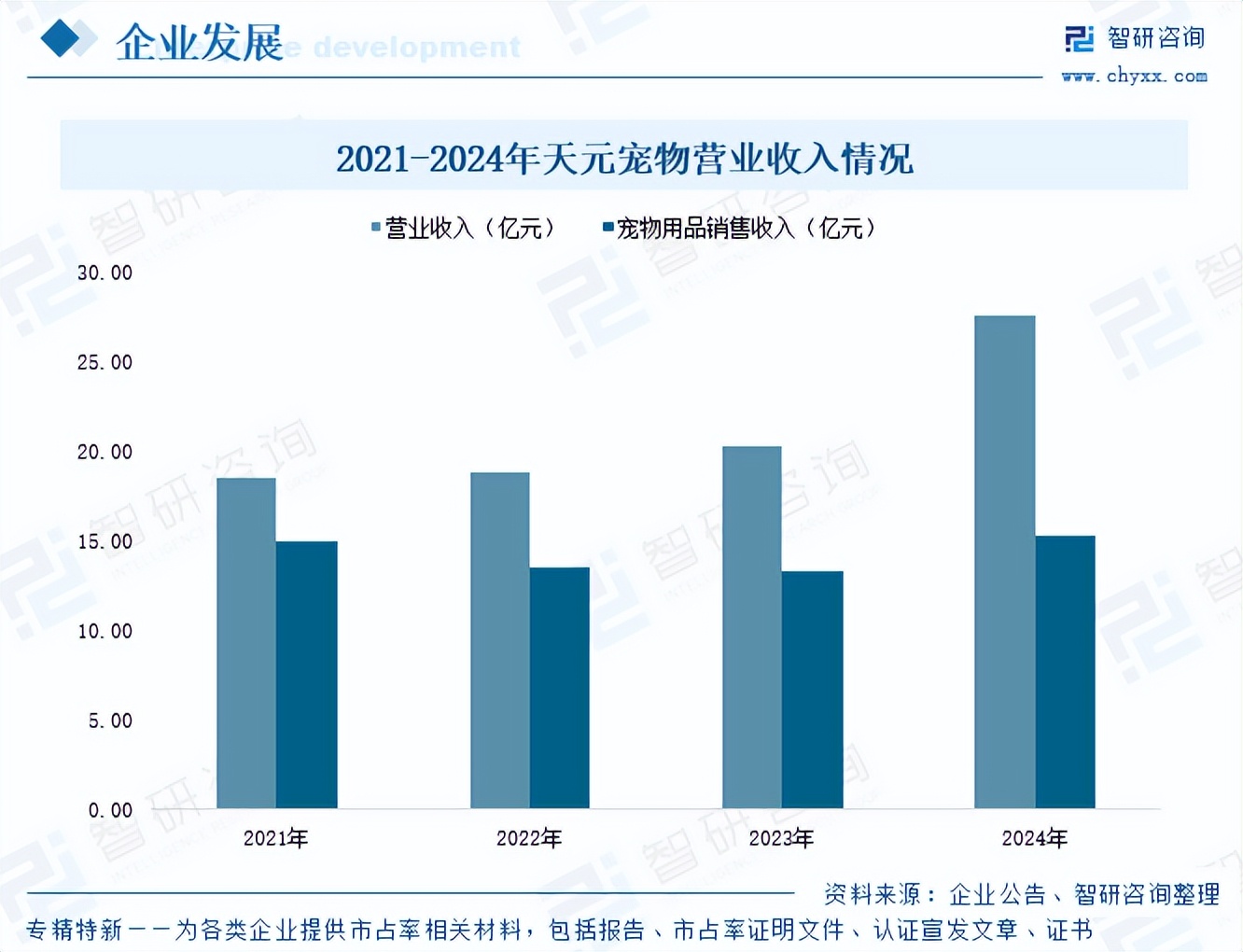 杭州天元宠物用品股份有限公司成立于2003年,2022年11月18日在深圳证券交易所创业板挂牌上市,股票简称“天元宠物”。天元宠物是一家专注于宠物用品的设计开发、生产、销售的综合性企业,主营产品包括宠物窝垫、猫爬架、宠物玩具、宠物服饰、电子智能宠物用品以及宠物食品等多系列、全品类宠物产品。在电子智能宠物用品领域,天元宠物代表产品有智能猫砂盆、智能饮水机、智能喂食器、智能互动玩具等。数据显示,2024年天元宠物应用收入为27.64亿元,同比增长35.69%;其中,宠物用品销售收入为15.3亿元,同比增长15.08%。