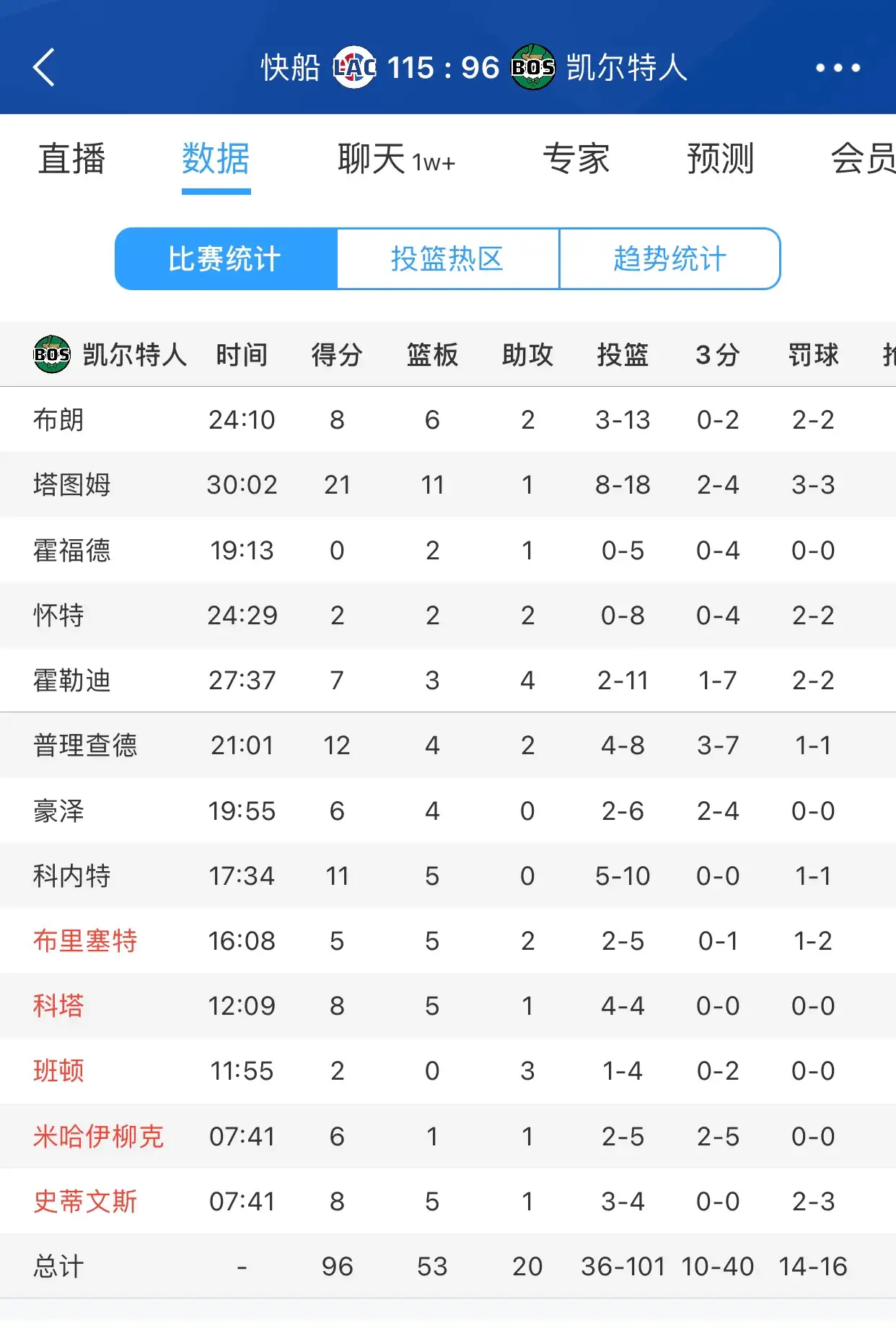 惨不忍睹!凯尔特人96-115快船!赛后苏群说的太对了