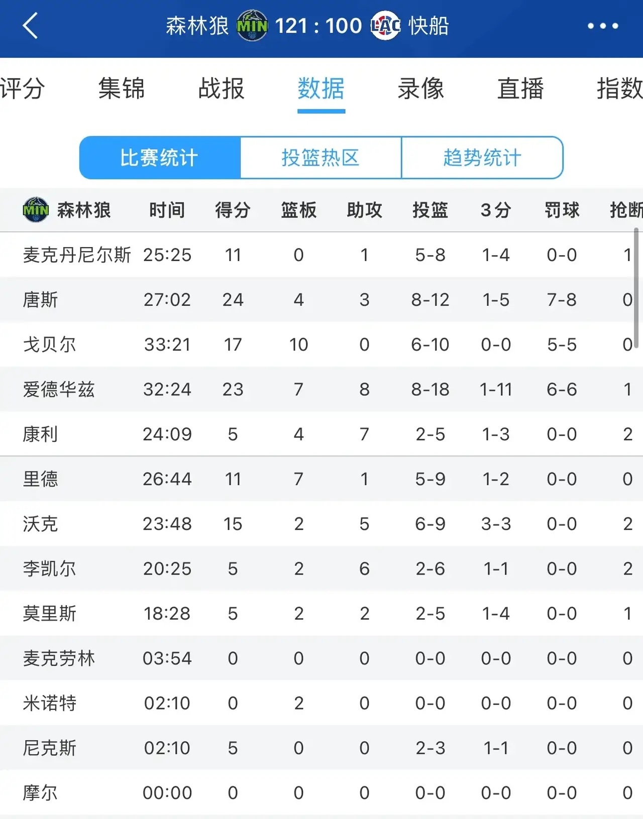 NBA 森林狼121-100快船,赛后苏群说的太对了
